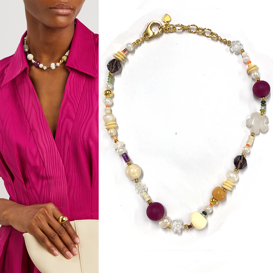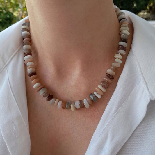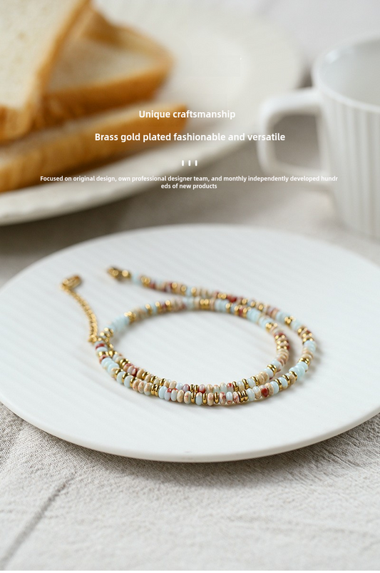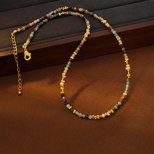 • Colorful Natural Stone Tube Beads Beaded Necklace