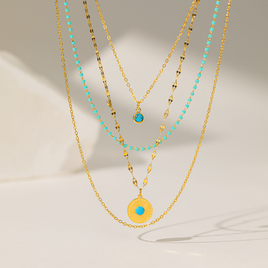 • Irregular Titanium Steel round Turquoise Pendant Necklace