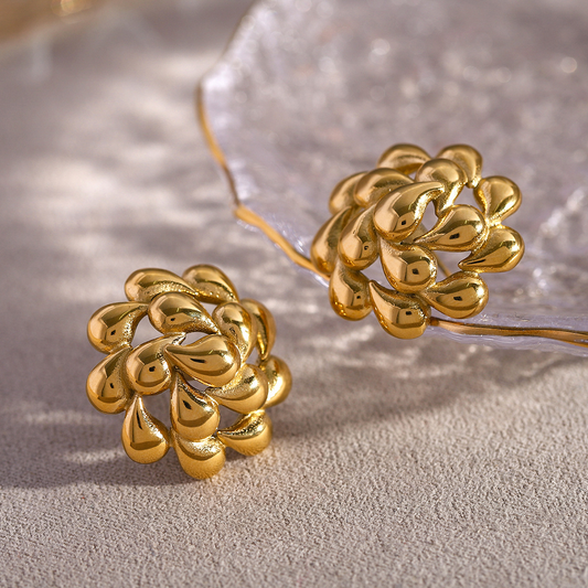 Rotating Water Drop Flower Titanium Steel Ear Studs